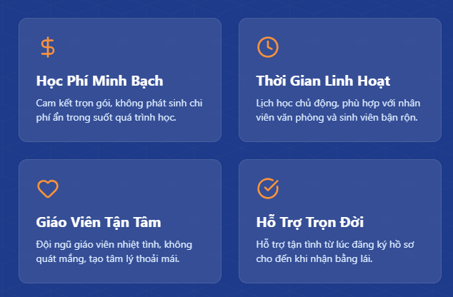 Chúng tôi tự hào là một trong số ít trung tâm tại TP.HCM minh bạch hoàn toàn chi phí, cam kết không phát sinh trong quá trình học.